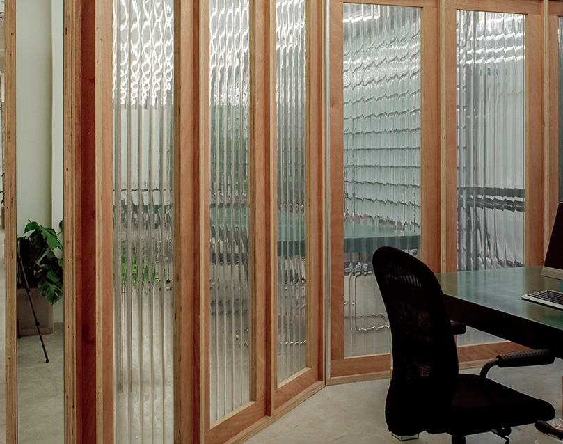 該項(xiàng)目中唯一的私人辦公室只是用PC波板隔開(kāi),這樣既允許必要的隱私,又能保持透明度的概念。