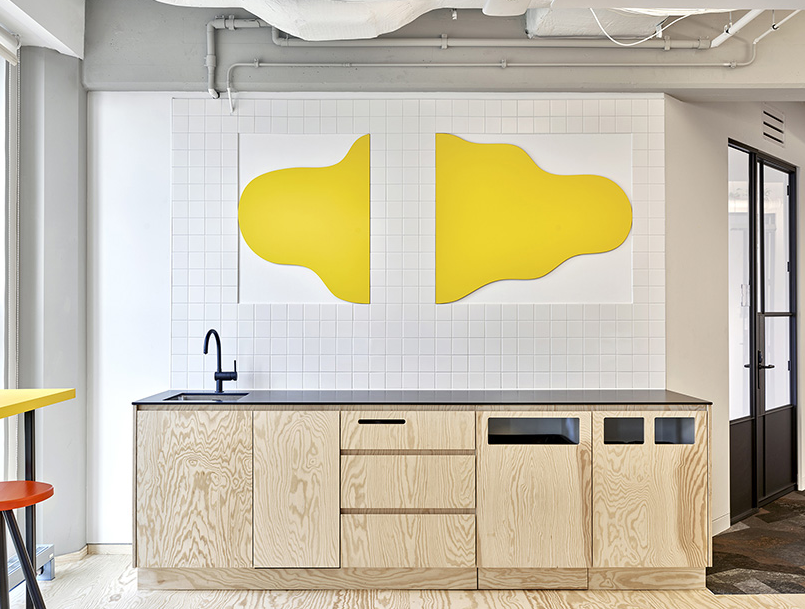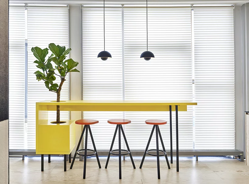 辦公室裝修中設計的操作臺上面也有黃色的裝飾,雖然簡單,但讓空間也有趣起來。