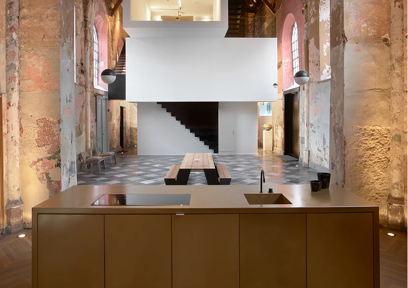 比利時(shí)的建筑實(shí)踐klabuiltuur已經(jīng)完成了“the waterdog”的辦公室裝修改造工程,這是一項(xiàng)歷史性的辦公室裝修工程。教堂在……里面比利時(shí)轉(zhuǎn)換成一個(gè)協(xié)作辦公空間。設(shè)計(jì)辦公室裝修干預(yù)的特點(diǎn)是公共空間和堆疊的容量包含工作設(shè)置,為更廣泛的公眾開(kāi)放歷史建筑的一系列活動(dòng)。